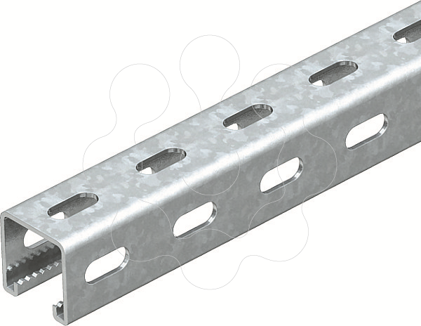 Perfis C, grandes cargas, para instalação individual de estruturas de suporte para, por exemplo, caminhos de cabos em chapa ou como consola para quadros elétricos. Também indicados para instalação de cabos em combinação com abraçadeiras BBS de tipo U.