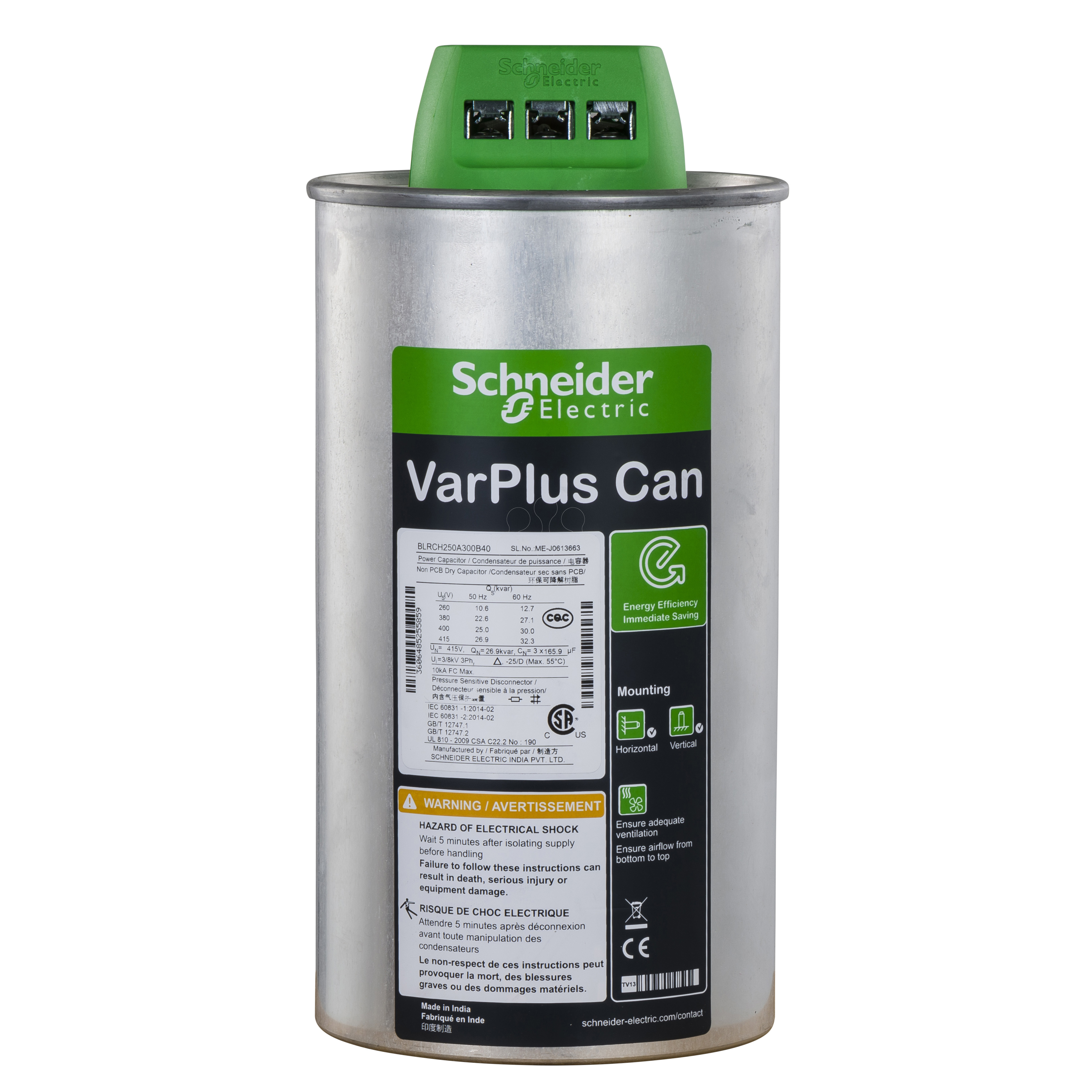 VarPlus Can HDuty Capacitor - 25/30 kvar - 400 V - 50/60Hz