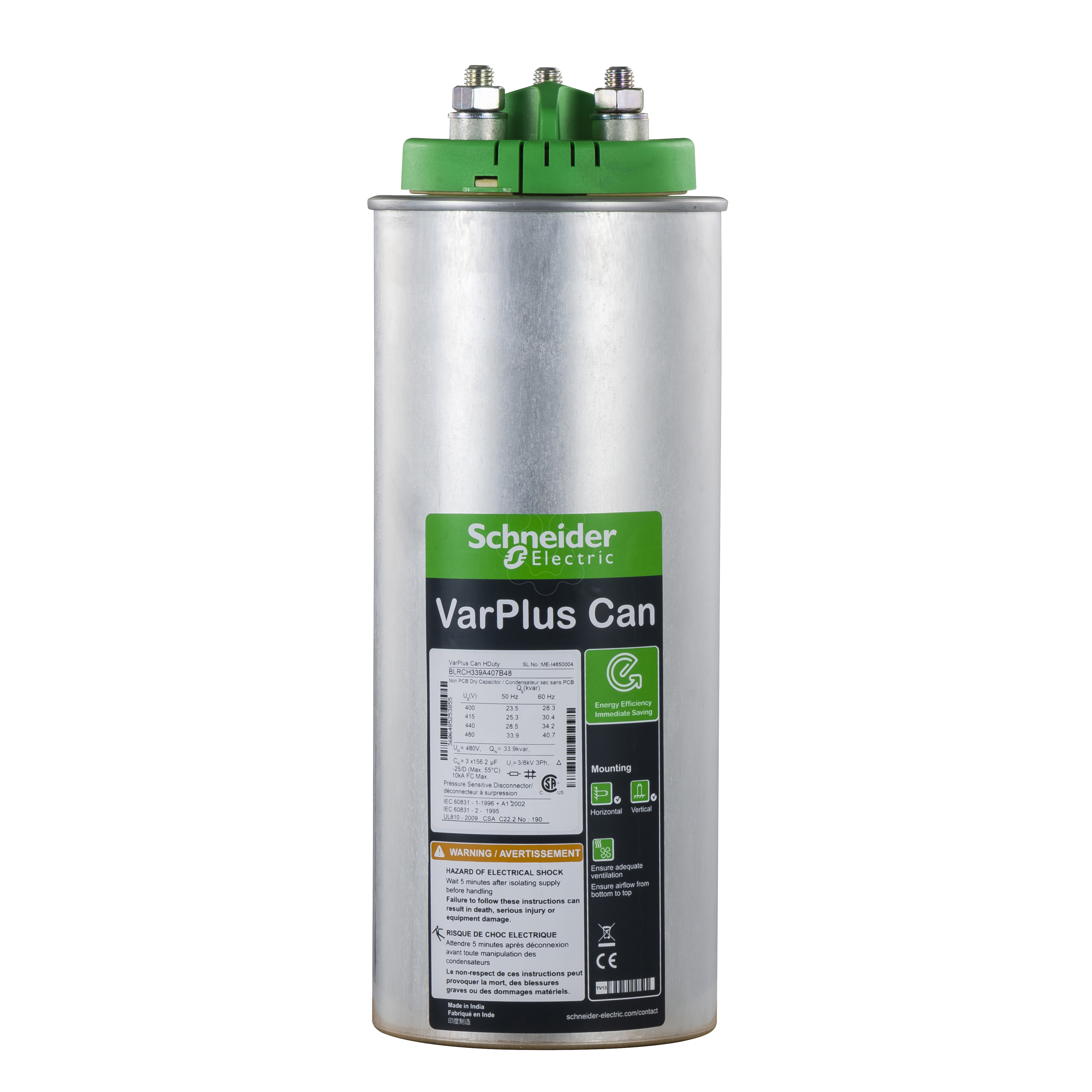 O capacitor VarPlus Can é uma solução confiável e flexível para correção do fator de potência em condições operacionais rigorosas. Esses capacitores são particularmente usados para distúrbios de alta tensão ou quando algumas cargas não lineares estão presentes. A corrente nominal dos capacitores deve ser aumentada para lidar com a circulação da corrente harmônica. Este capacitor fornece uma potência de saída nominal de 33,9 kVar a 480 V AC, 50 Hz. Fixação assegurada por um terminal ClampTite. Este componente atende às normas IEC 60831-1 e IEC 60831-2. O peso do produto da caixa é de 4,1 kg.