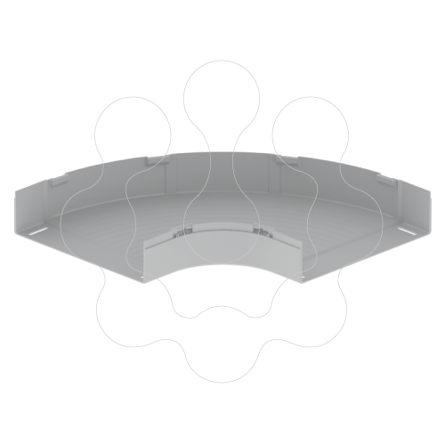 Curva plana 90° Unex 100X400 em U23X. Para alterar direção 90º. Cobre os cortes do caminho de cabos, proporcionando um melhor acabamento. Recomenda-se colocar suportes por baixo das curvas. Cor: Cinzento. Material isolante. Segurança elétrica, mecânica e em caso de incêndio. Não perde secção com respeito ao caminho de cabos. Rapidez e facilidade de montagem. Não são necessárias uniões para a montagem.