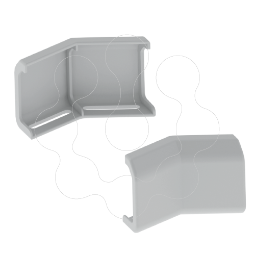 União de canto Unex 100mm em U23X. Para montar ângulos a 45°. 1 referência é composta por 2 peças (direita e esquerda). Cor: Cinzento. Material isolante. Garantem estabilidade. facilidade e rapidez de montagem como na união entre troços.