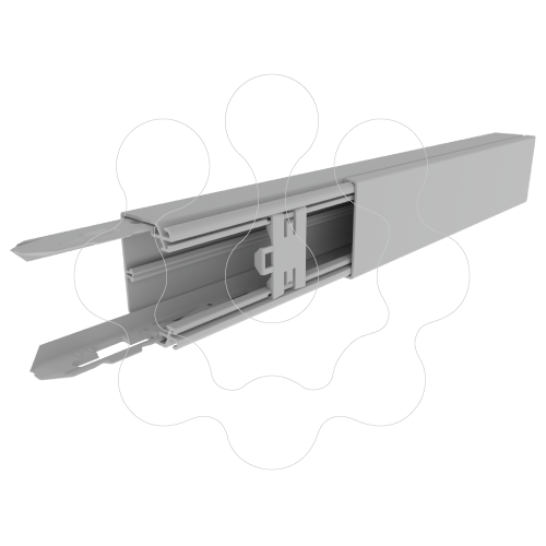 Calha Unex 40x60 em U23X. Perfil para distribuição de cabos com tampa exterior, apto para uso em intempérie. Tem compartimentação flexível para a condução e proteção de cabos elétricos e de comunicações. A base é perfurada a cada 250mm. Com a calha, é fornecida uma ponte a cada 0,5m e duas uniões. Estas peças vêm pré-montadas. Comprimento: 3m. Recomendadas ITED. Segurança: mecânica (proteção contra impactos IK10), elétrica (material isolante, IP4X montada na parede) e em caso de incêndio (ensaio do fio incandescente a 960 °C, não propagador da chama). A montagem da tampa realiza-se à pressão (não é necessário deslizar para montar). A ponte retém os cabos assegurando a fixação da tampa nos casos mais exigentes. As uniões unem mecanicamente os troços da calha garantindo a sua perfeita alienação, facilitando a montagem e fixação das bases sobre a superfície. Tanto a calha como os elementos de acabamento podem pintar-se. Separador móvel com montagem frontal. Cor: Cinzento RAL 7035.