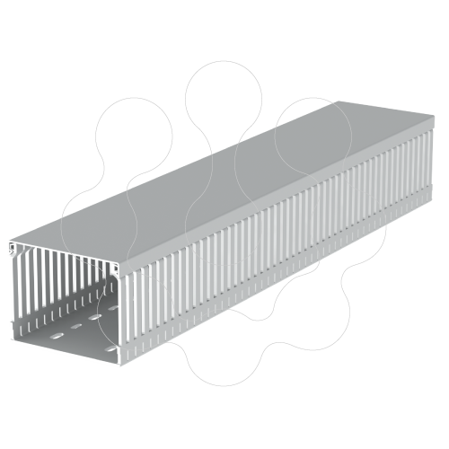 Calha Unex 80x100 em U43X. Para a condução de cabos em quadros elétricos e de comunicações, com possibilidade de montagens suspensas. Material isolante. Comprimento: 2m. Cor: Cinzento. Segurança em caso de incêndio: ensaio do fio incandescente 960 °C, não propagador da chama, sem halogéneos. Comodidade de instalação e manutenção. Fácil montagem e desmontagem da tampa, com grande segurança de fecho. Segurança de uso e redução de custos. Ausência de arestas e pontas cortantes. Linguetas flexíveis, resistentes e arredondadas: fáceis de cortar, não se partem acidentalmente e evitam danos aos utilizadores e nos cabos. Ranhura até 6mm2 para a derivação de cabos.