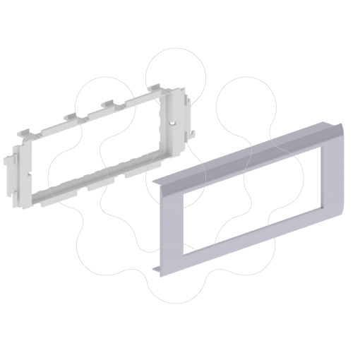 Adaptador 3 mecanismos Unex, para tampa 65mm, cor alumínio, em U24X. Para instalar mecanismos Mosaic 45, Simon Connect K45 e Schneider New Unica (6 módulos de 22,5 x 45). Cor alumínio. Material isolante. facilidade de instalação. proteção contra danos mecânicos grau IK08.