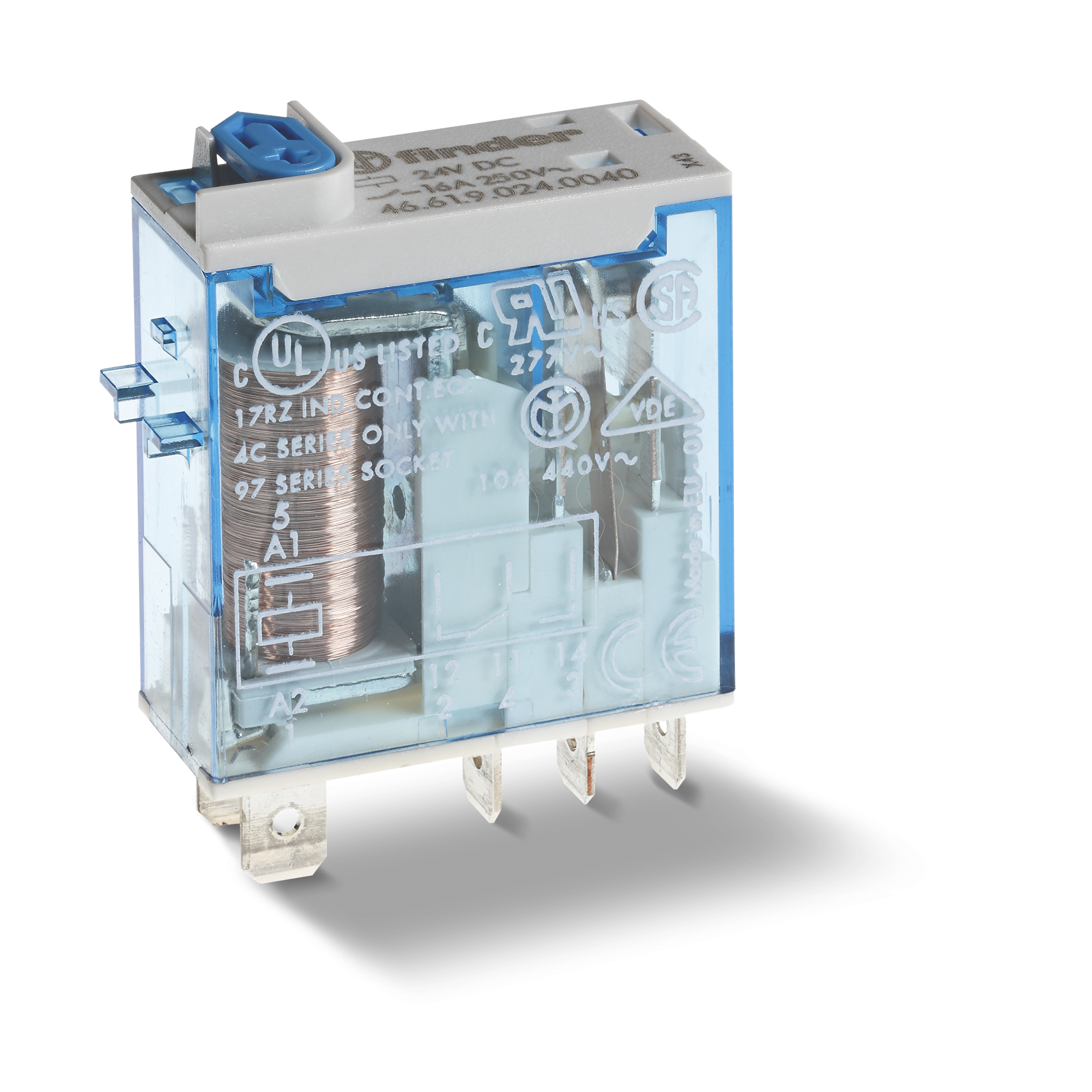 Mini relé industrial Corrente nominal: 16 A. Nr.contato: 1 Reversível Material dos contatos: AgSnO2 Acabamento da conexão elétrica: Conexão por encaixe Faston 187 Tipo de tensão para atuação: AC Tensão de alimentação de corrente nominal de 50 Hz AC: 230 V. Acionador, polarização: Polaridade livre Acionador/comutação do inversor: Mono estável Categoria de proteção: RT II. Com indicação LED: sim opcional: Botão de teste bloqueável+indicador mecânico acessórios: Adaptador para conexões a parafuso,Base S.97