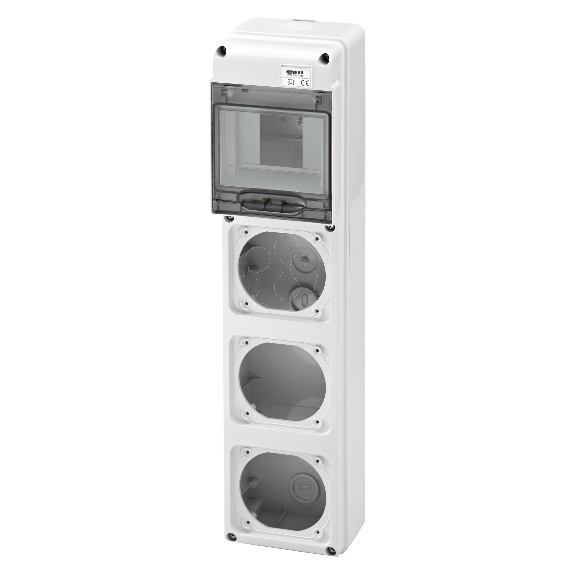 Série 68 Q-DIN - Quadros de distribuição - Sistema completo de quadros elétricos IP65 para a distribuição de energia nos sectores terciário, industrial e de estaleiro, disponível nas versões em vazio e com fios, de acordo com a norma internacional IEC 61439. A gama Q-DIN é composta por quadros elétricos de 5 a 20 módulos DIN e módulos adicionais de 14M e 20M para obter mais espaço DIN. Permitem o alojamento de tomadas encastradas e encravadas até 63A e são amplamente equipadas com acessórios.