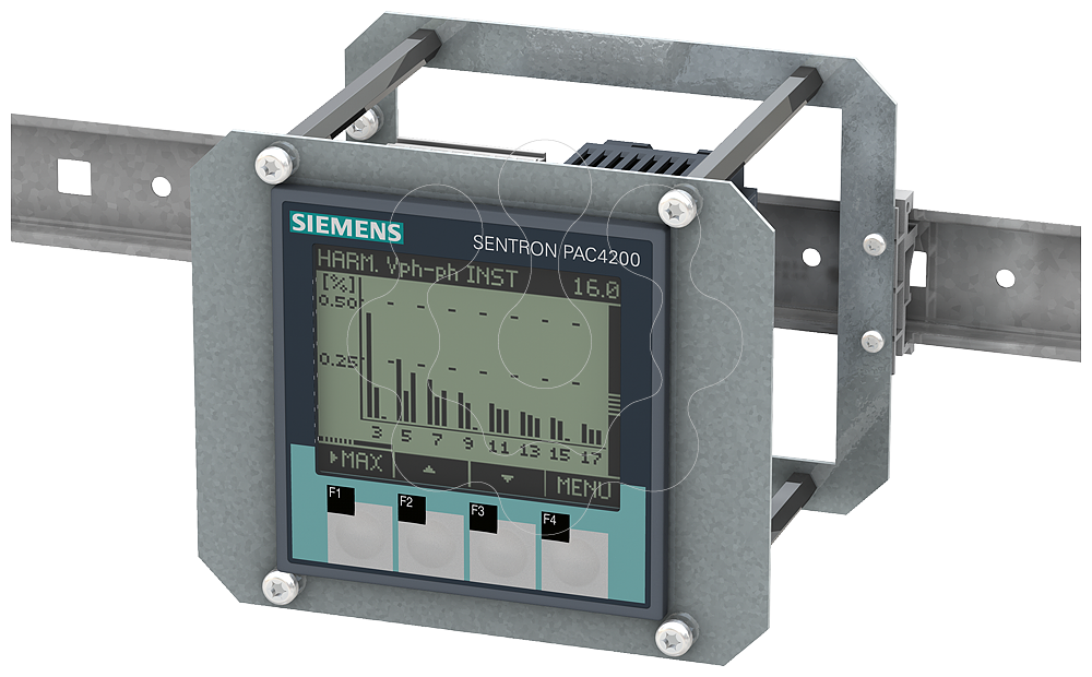 SENTRON instrumento de medição 7KM PAC4200, montagem frontal, 500/289 V, 5 A, 22-65 V CC, Modbus TCP, incl. adaptador para trilho DIN