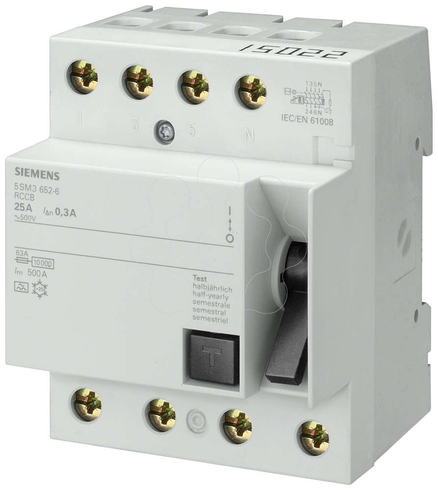 disjuntor de corrente de fuga, de 4 pólos, tipo CA, In: 100 A, 100 mA, Un CA: 400 V