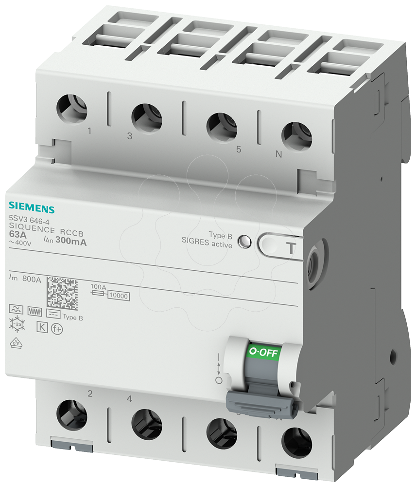 Disjuntor de corrente de fuga, 4 pólos, tipo B+, seletivo, In: 80 A, 300 mA, Un CA: 400 V