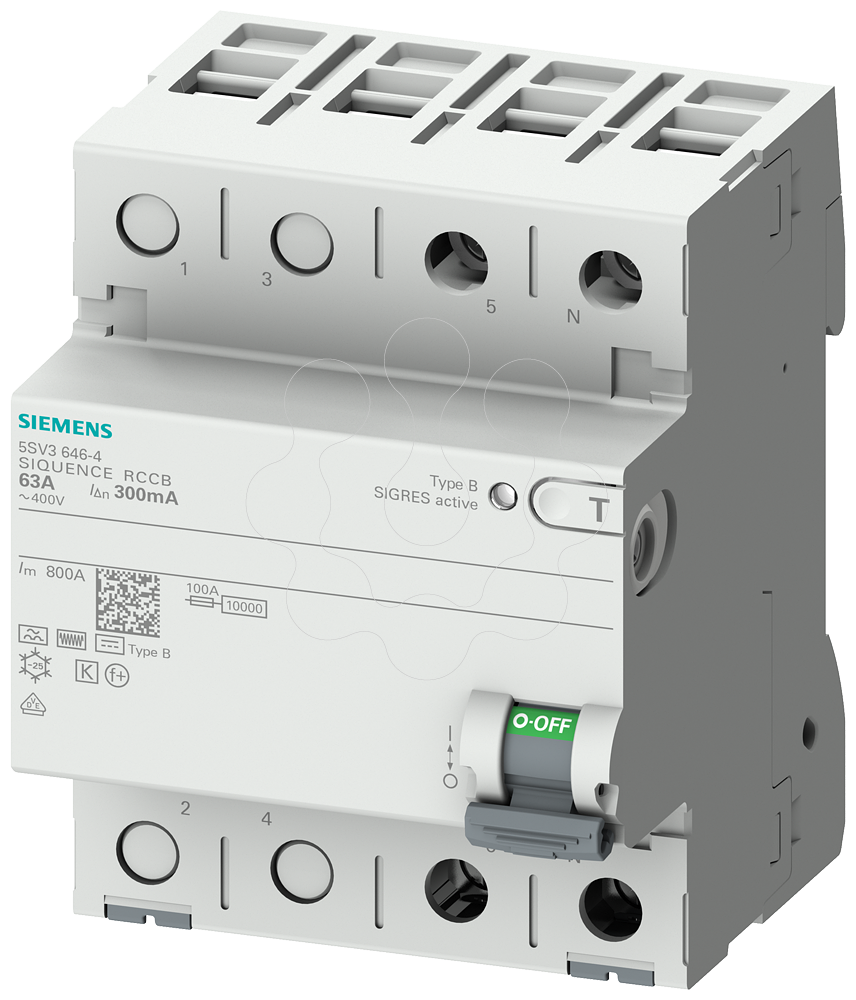 Disjuntor de corrente de fuga, de 2 pólos, tipo B, com retardamento a curto prazo, In: 63 A, 300 mA