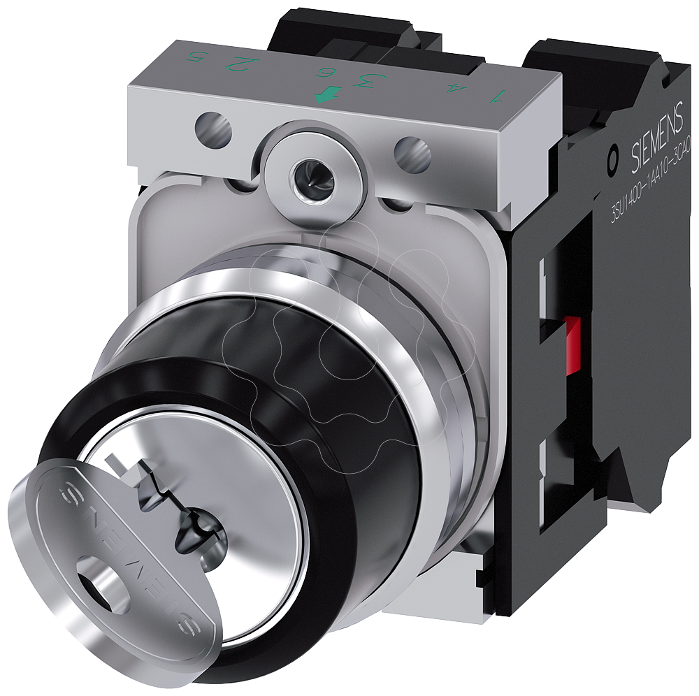 Interruptor de chave RONIS, 22 mm, redondo, metal, de alto brilho, número do fecho SB30, com 2 chaves, 2 posições de comutação O-I, de encaixe, âng...