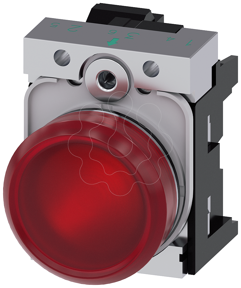 indicador luminoso, 22 mm, redondo, metal, de alto brilho, vermelho, lente, plano, com suporte, módulo LED com LED integrado CA/24V CC, conexão de ...