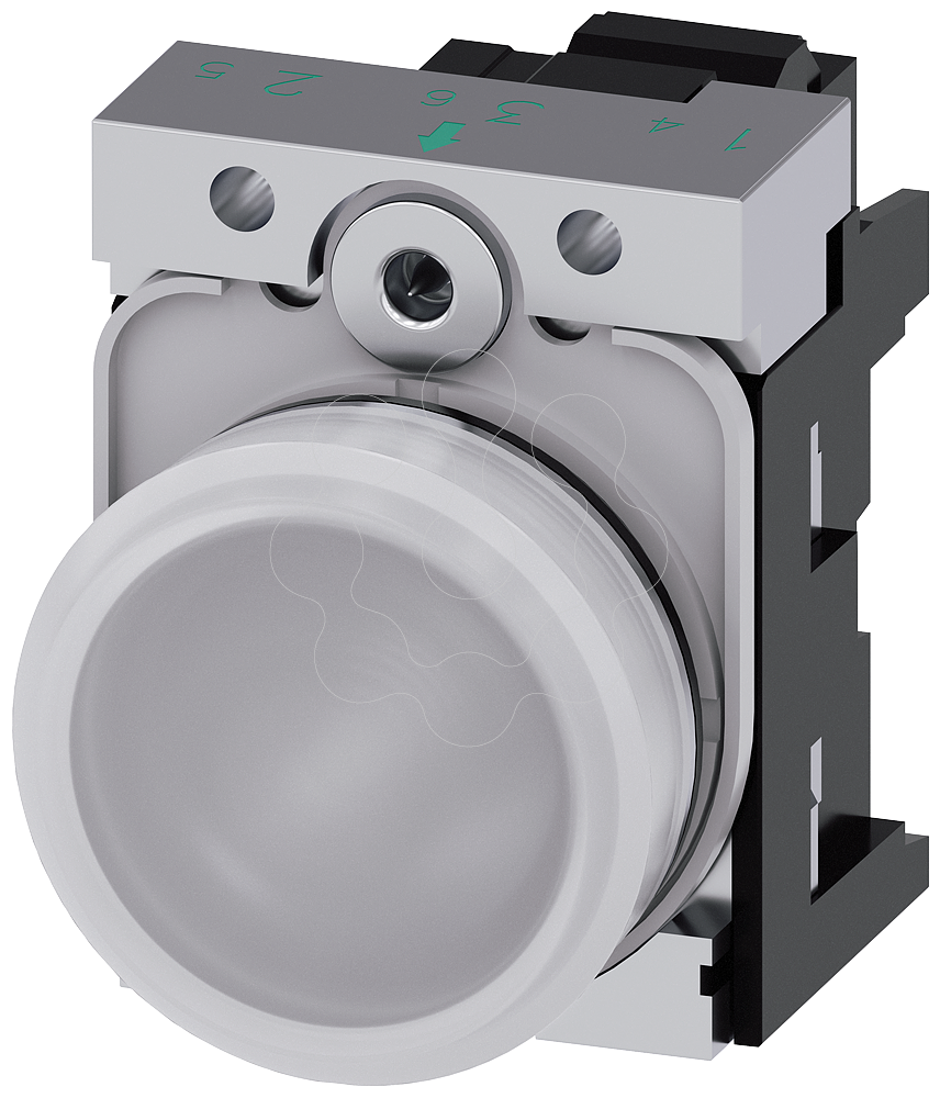indicador luminoso, 22 mm, redondo, metal, de alto brilho, branco, lente, plano, com suporte, módulo LED com LED integrado CA/24V CC, conexão de mo...