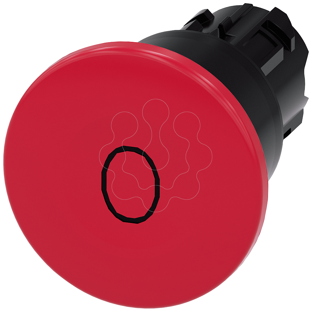 botão tipo cogumelo, 22 mm, redondo, plástico, vermelho, inscrição: O, 40 mm, de encaixe, desbloqueio puxando Z=50x embalado