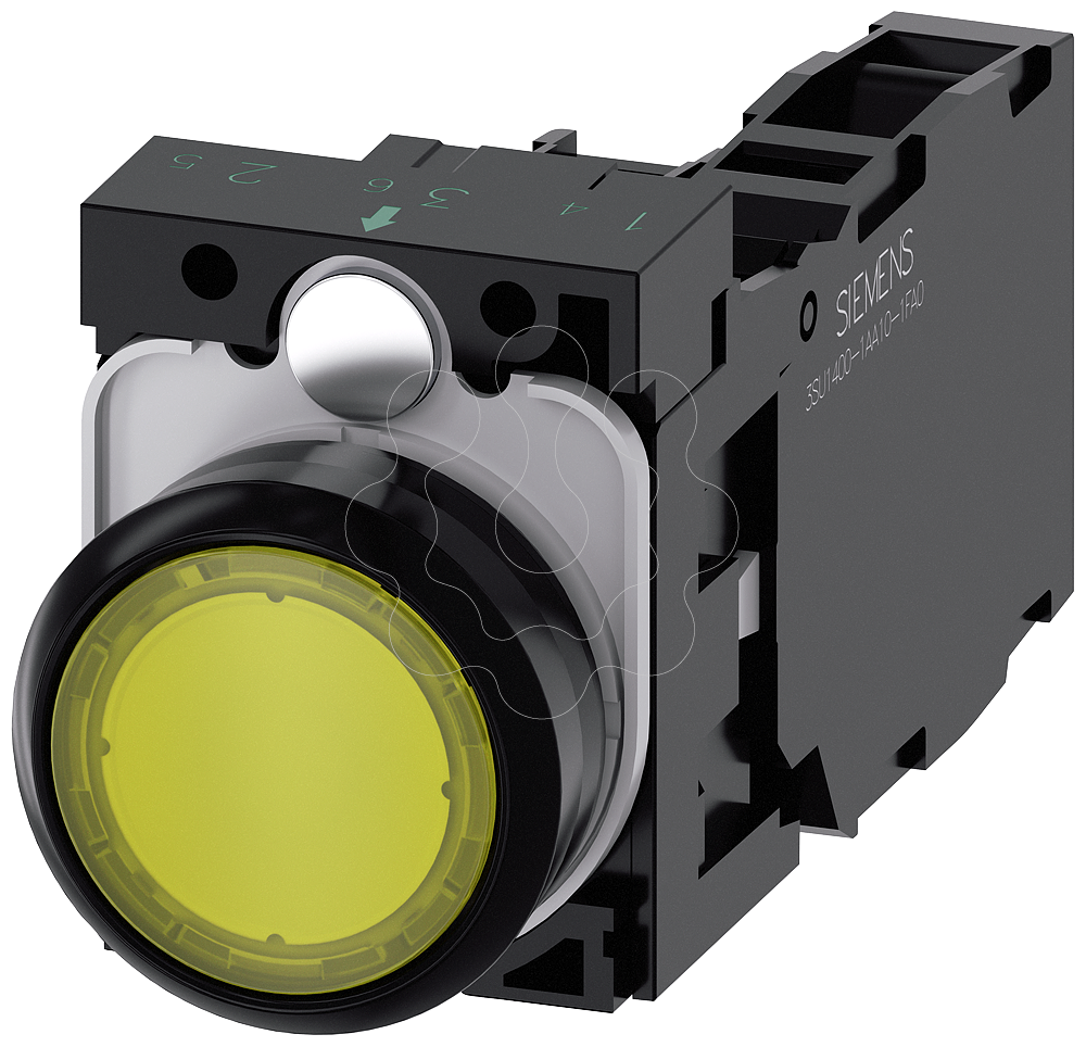 Botão de pressão, iluminado, 22mm, redondo, plástico, amarelo, 1NA+1NF, 110V CA