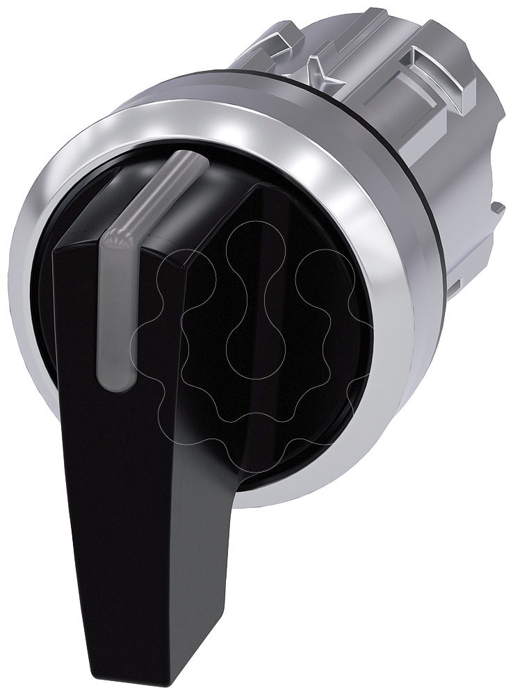 Interruptor com manípulo iluminável, 22mm, redondo, metal, alto brilho, preto, manípulo longo