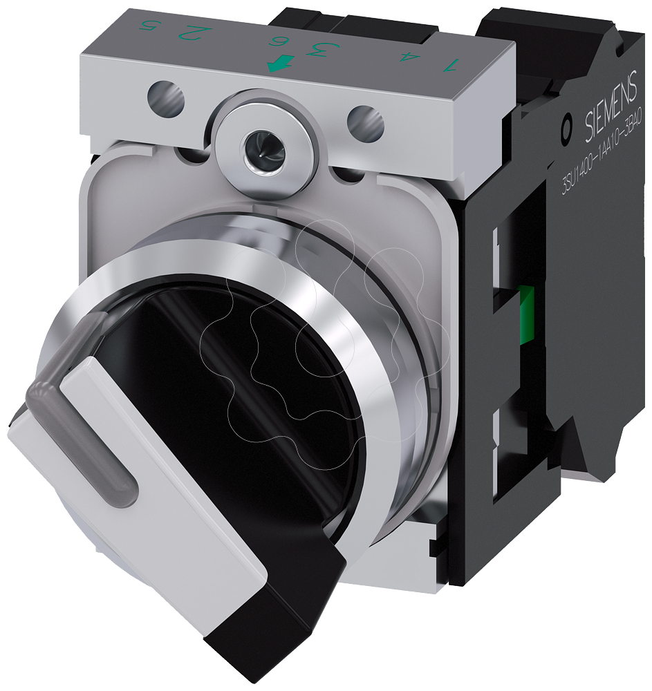 Interruptor com manípulo, iluminável, 22mm, redondo, metal, alto brilho, branco, 1NA