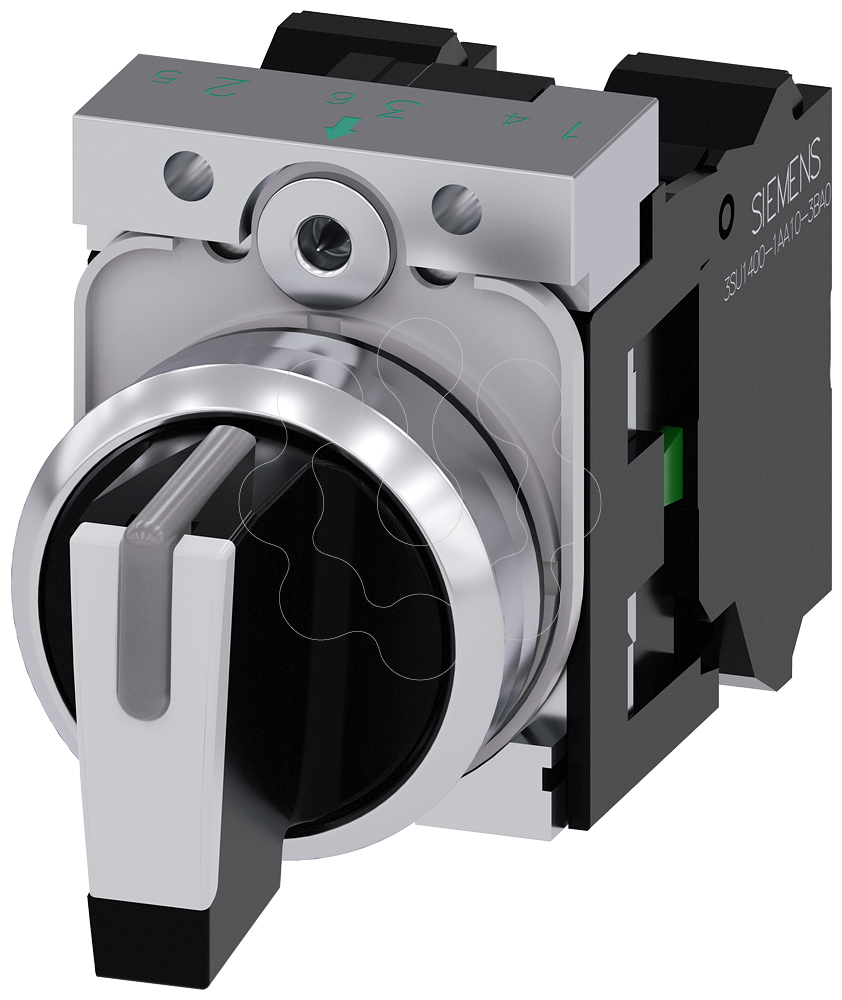 Interruptor com manípulo, iluminável, 22mm, redondo, metal, alto brilho, branco, 1NA, 1NA