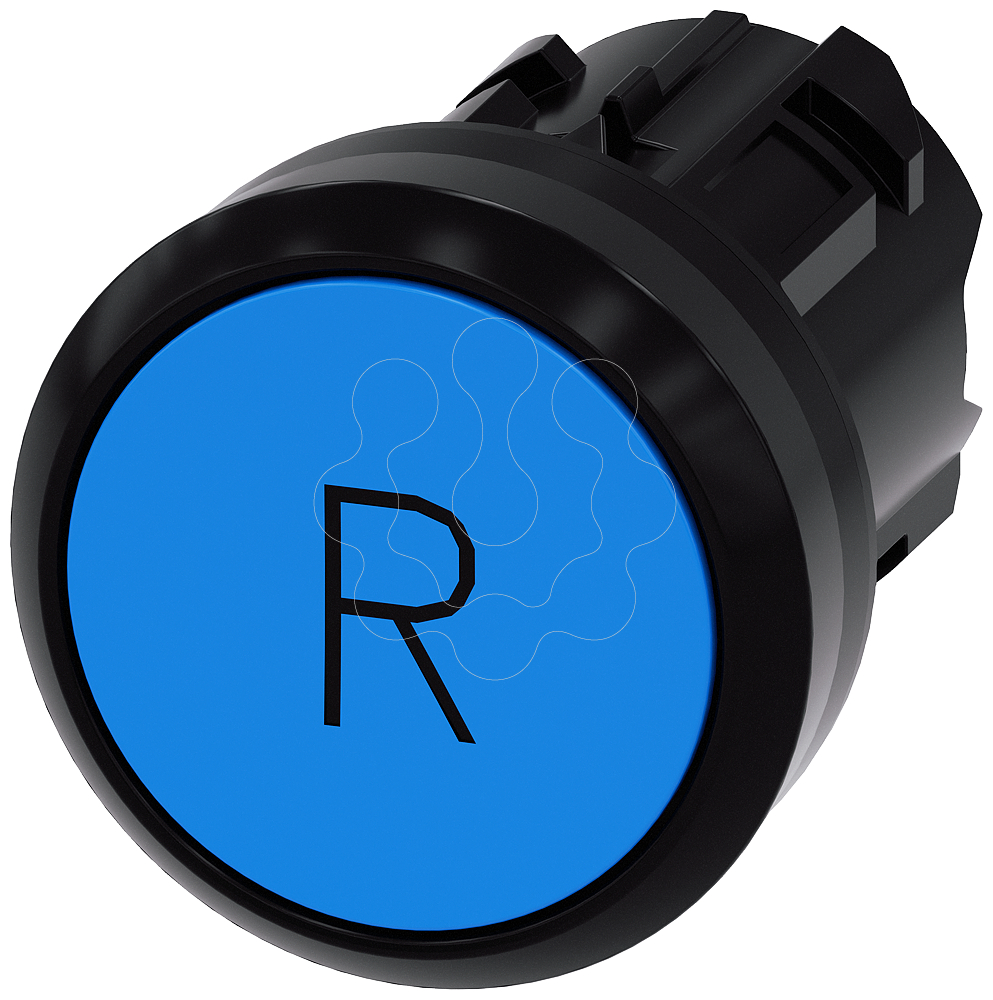 Botão de pressão, 22mm, redondo plástico, azul, inscrição: R, botão de pressão