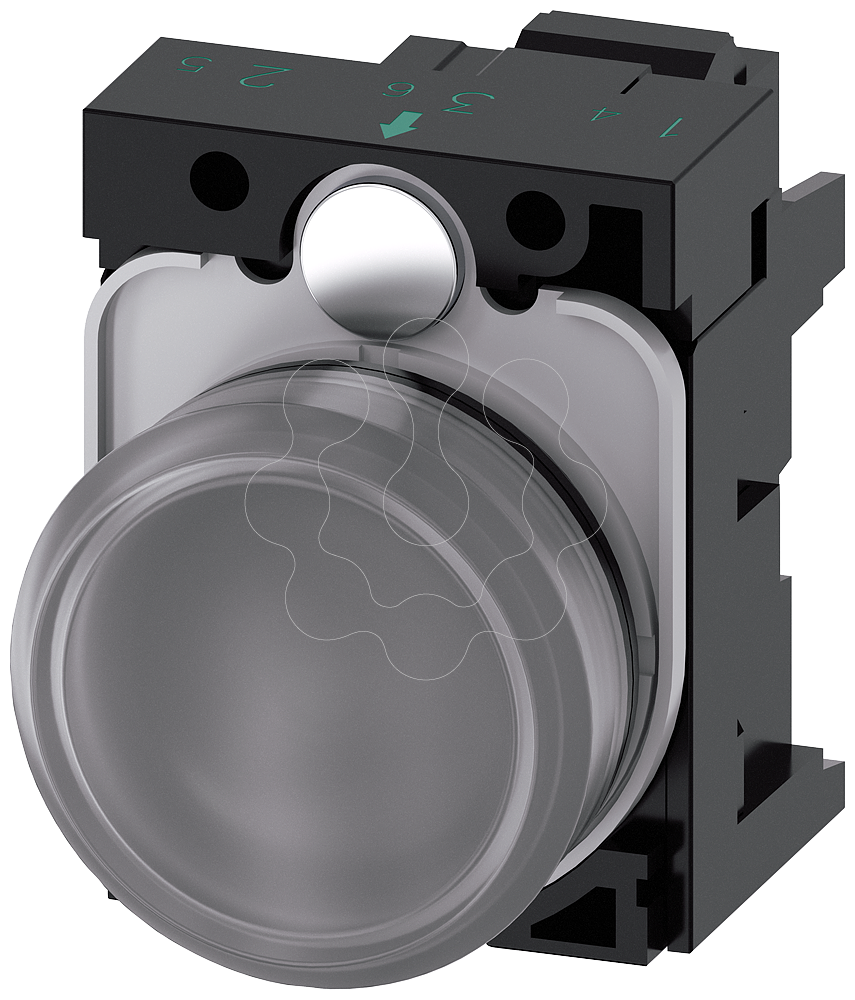 indicador luminoso, 22 mm, redondo, plástico, transparente, lente, plano, com suporte, módulo LED, com LED integrado CA 110 V, conexão de mola, com...