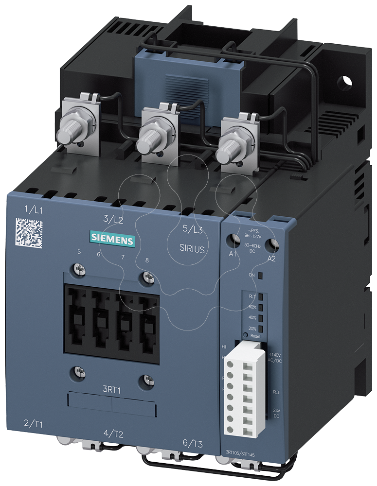 Contactor, AC-3e, 150A/75kW/400V, 3 polos, AC/DC200-277V, PLC-IN opcional, 1NA+1NF, calha de ligação/ligação com parafuso