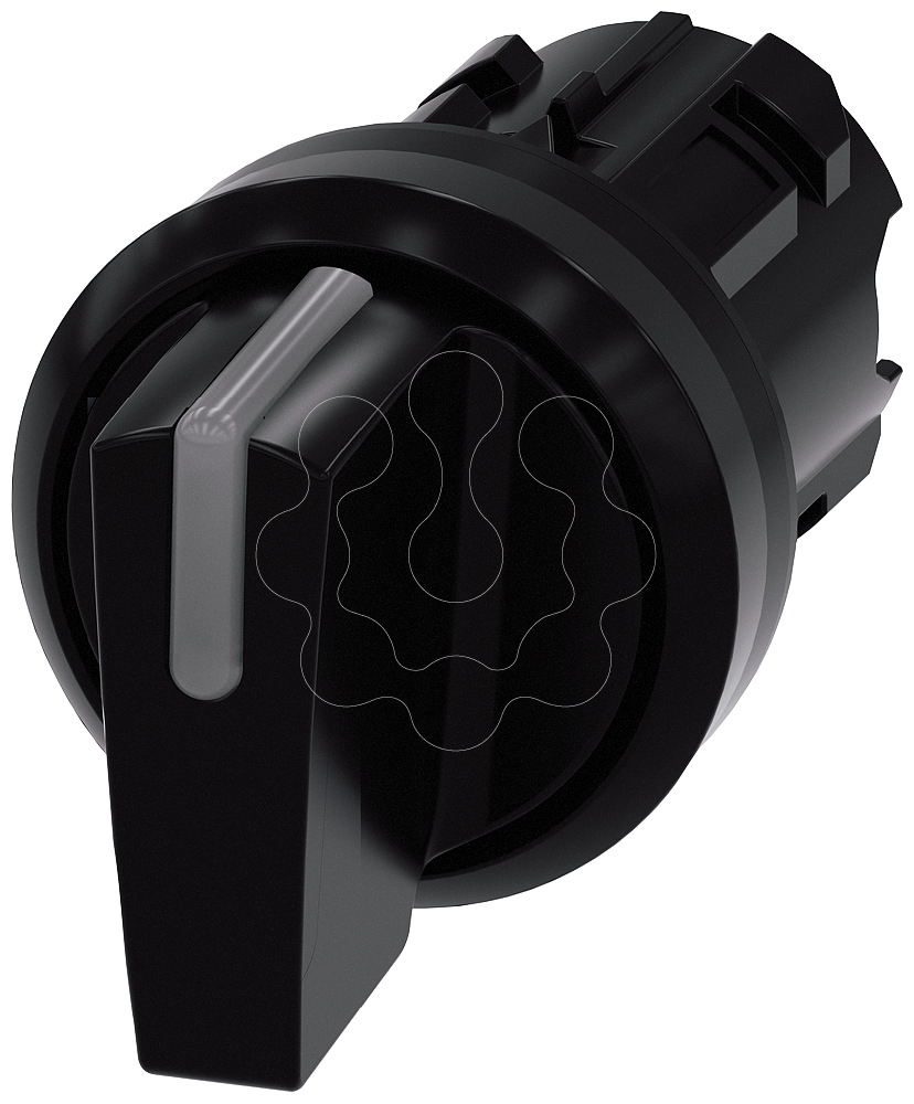 Interruptor com manípulo iluminável, 22 mm, redondo, plástico, preto, manípulo curto, 3 posições de comutação I>O<II, tecla com retorno, ân