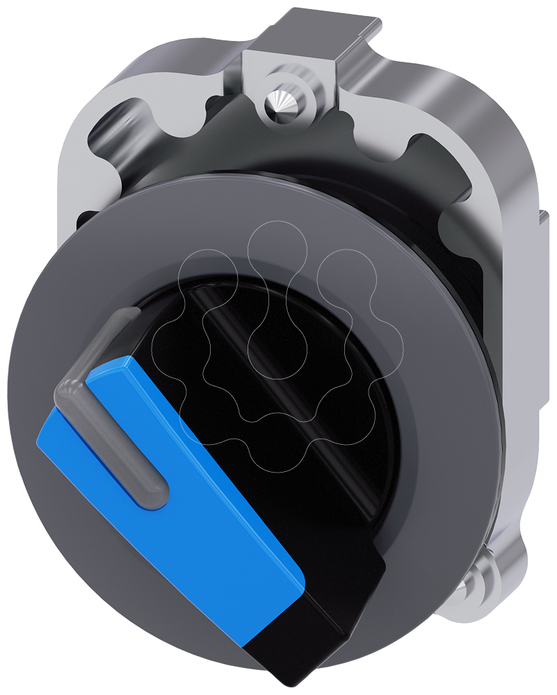 interruptor com manípulo, iluminável, 30 mm, redondo, metal, mate, azul, manípulo, curto, anel frontal para montagem plana, 2 posições de comutação...