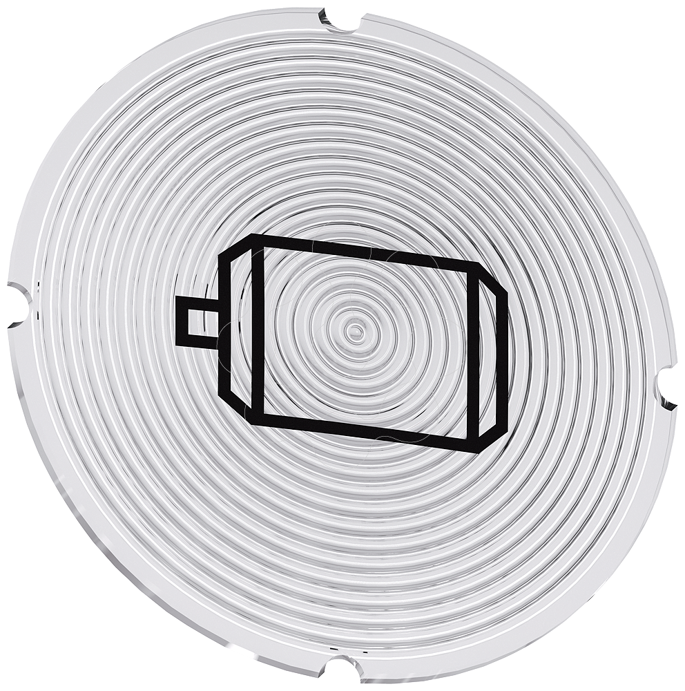 Placa embutida para botão de pressão iluminado, redondo, leitoso, símbolo: Motor elétrico