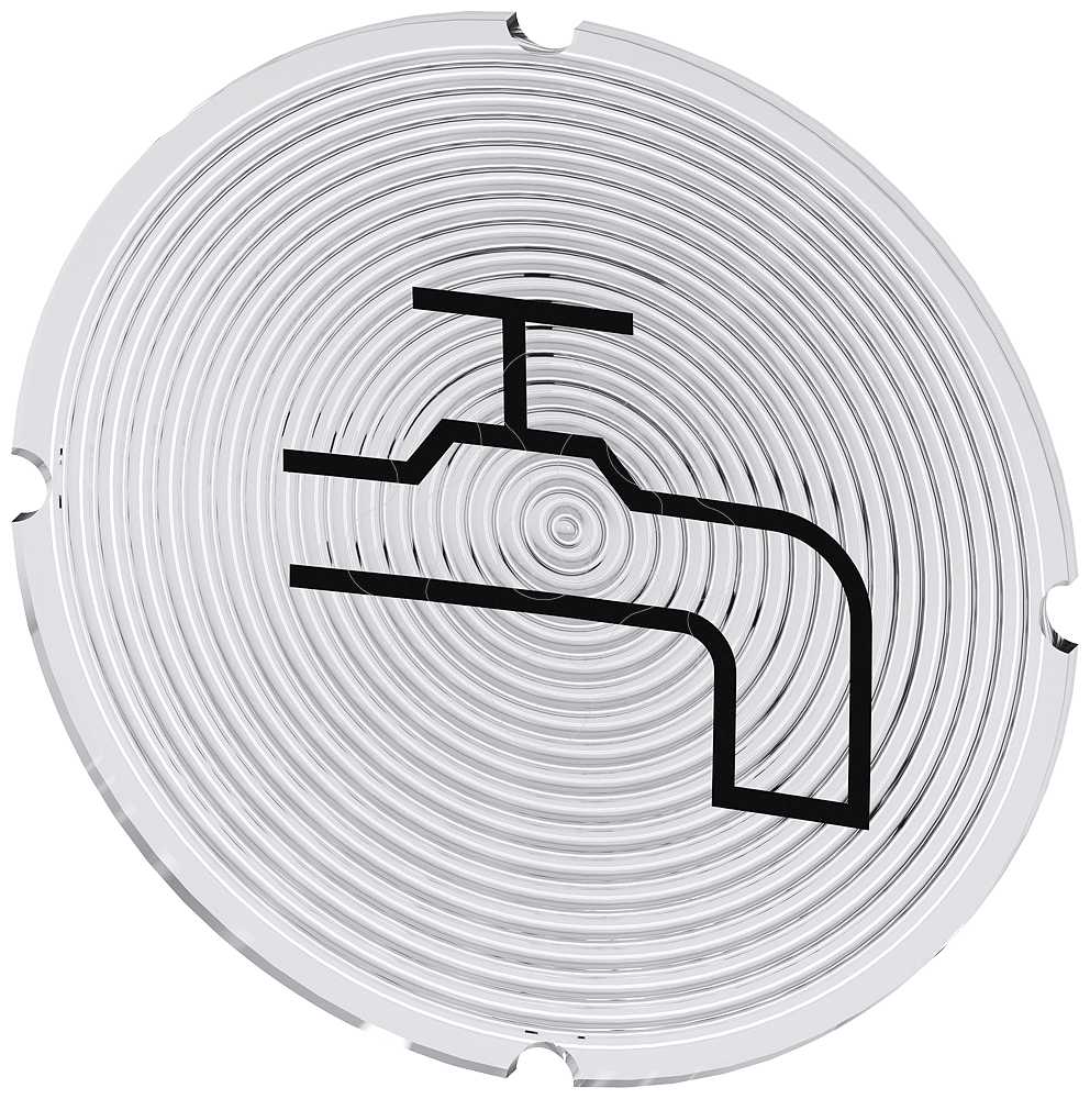 Placa embutida para botão de pressão iluminado, redondo, leitoso, símbolo: Alimentação da água