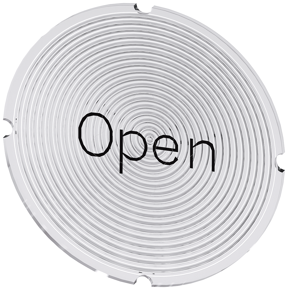 Placa embutida para botão de pressão iluminado, redondo, leitoso, inscrição: Open
