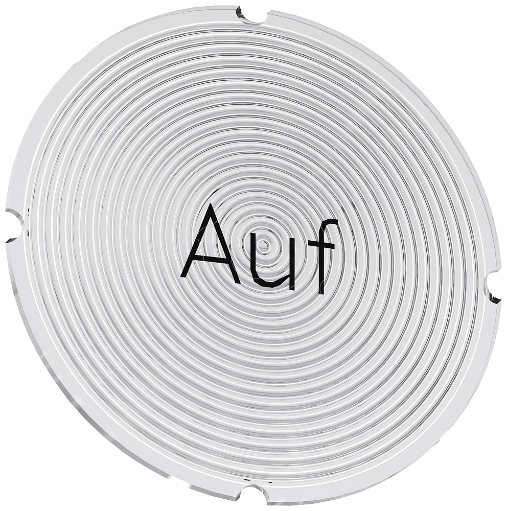 Placa embutida para botão de pressão iluminado, redondo, leitoso, inscrição: Cima