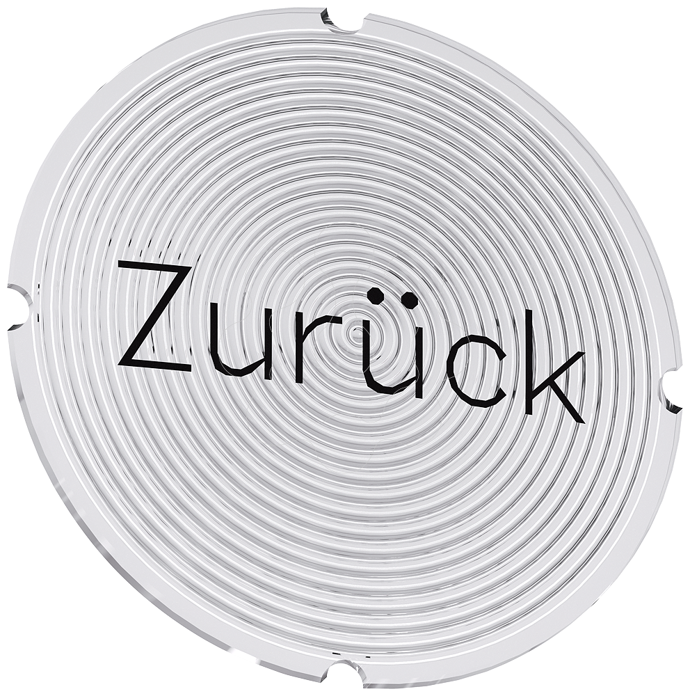 Placa embutida para botão de pressão iluminado, redondo, leitoso, inscrição: Para trás