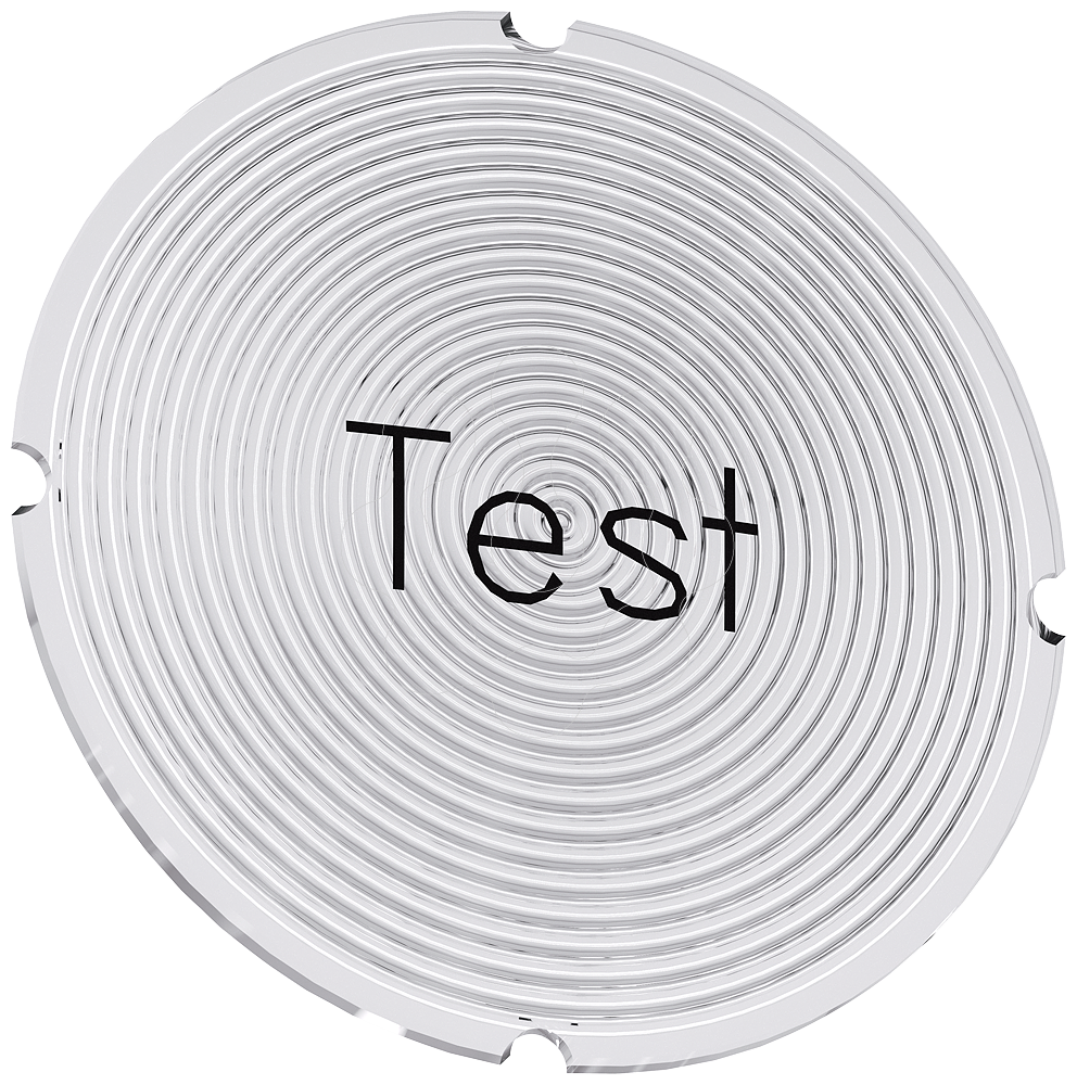 Placa embutida para botão de pressão iluminado, redondo, leitoso, inscrição: Teste