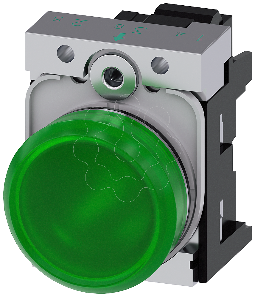 Sinalizador luminoso, 22mm, redondo, metal, alto brilho, verde, lente, plano, 110V CA