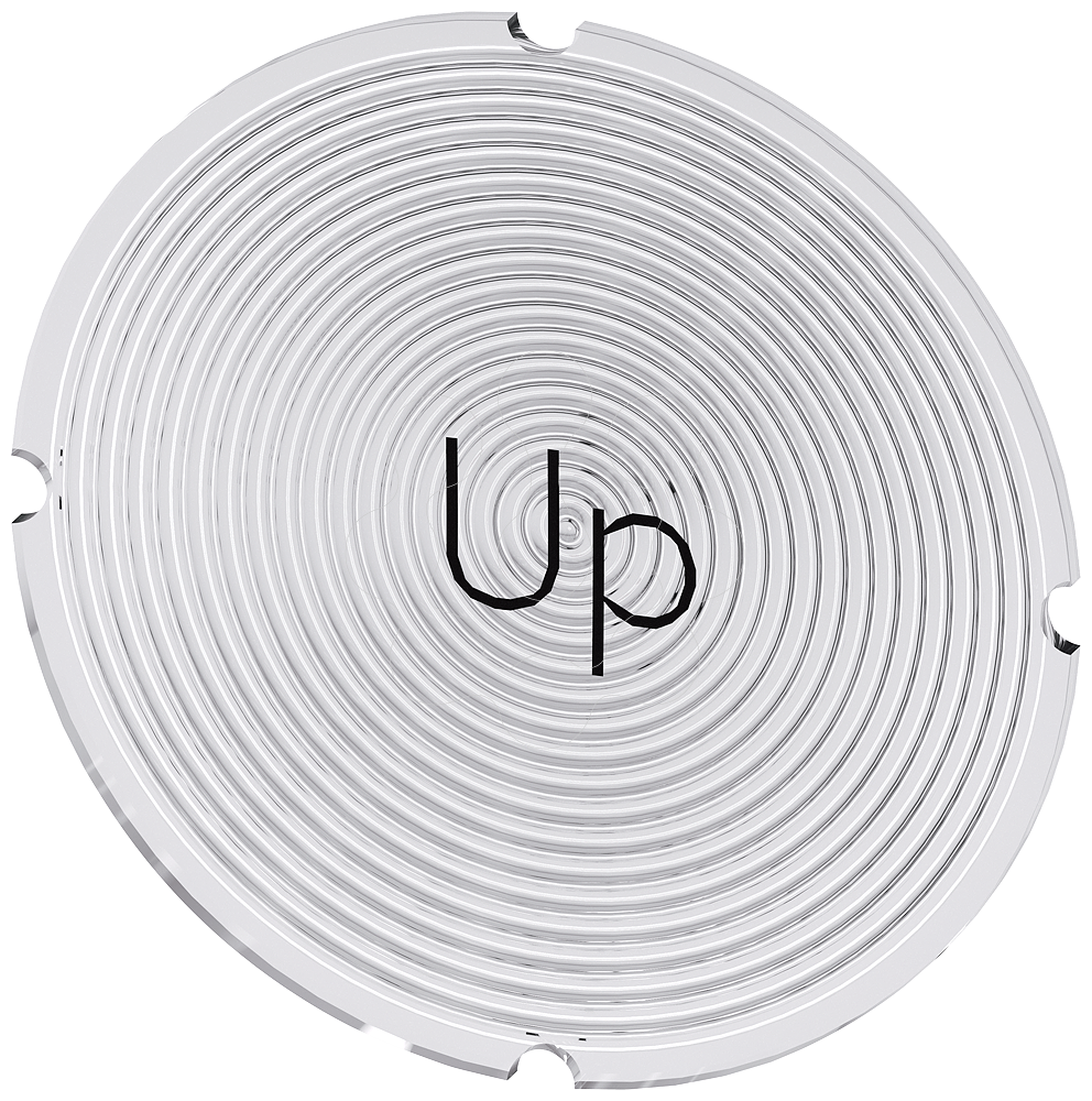 Placa embutida para botão de pressão iluminado, redondo, leitoso, inscrição: Up
