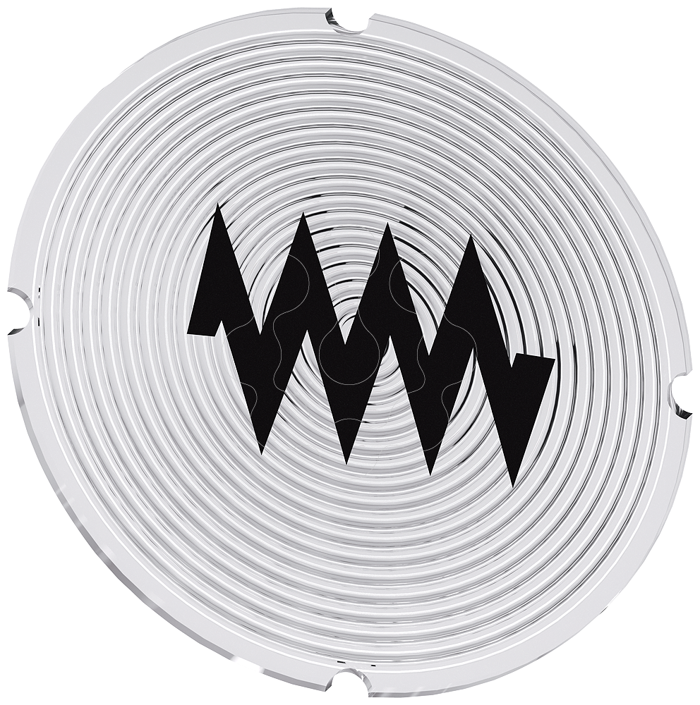 Placa embutida para botão de pressão iluminado, redondo, leitoso, símbolo: Avanço