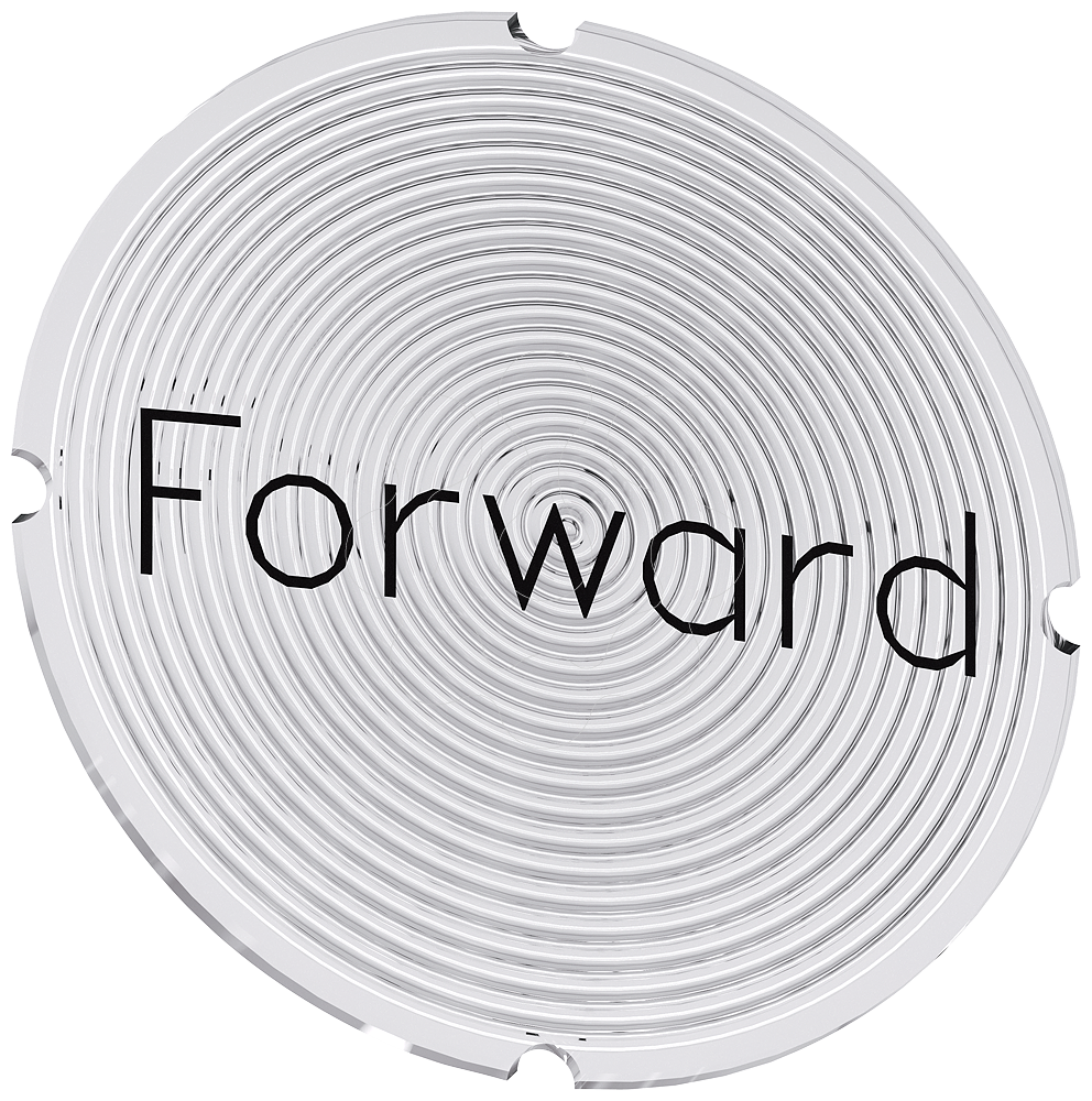 Placa embutida para botão de pressão iluminado, redondo, leitoso, inscrição: Forward