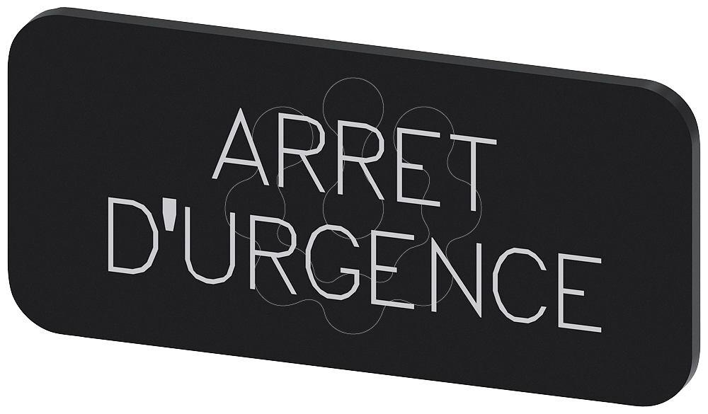 Placa de identificação 12,5x27mm, placa preto, inscrição: Arret DURGENCE