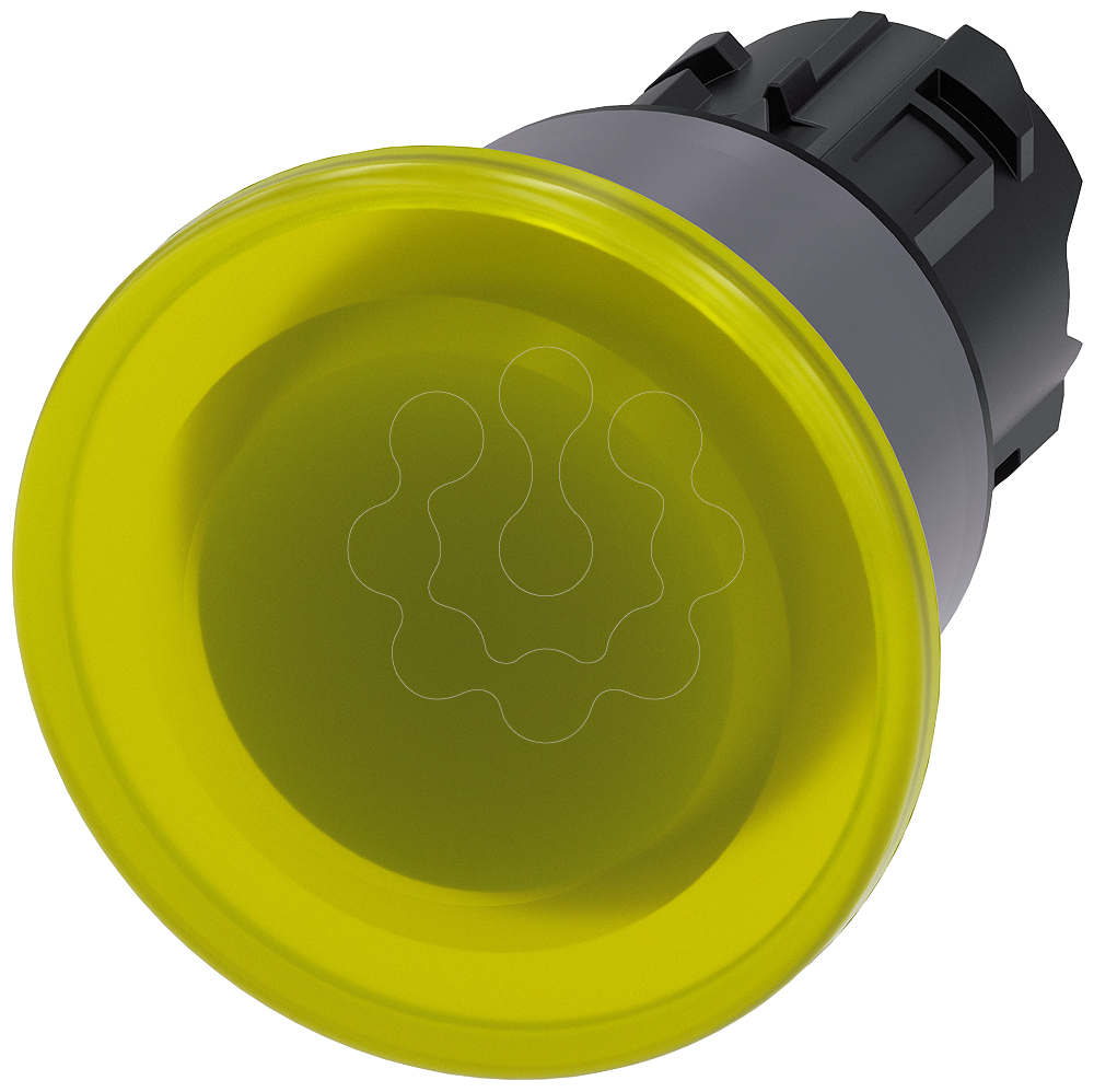 Botão cogumelo, iluminado, 22mm, redondo, anel frontal de metal, amarelo, 40mm
