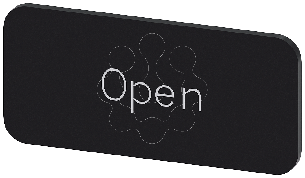 Placa de identificação 12,5x27mm, placa preto, inscrição: Open