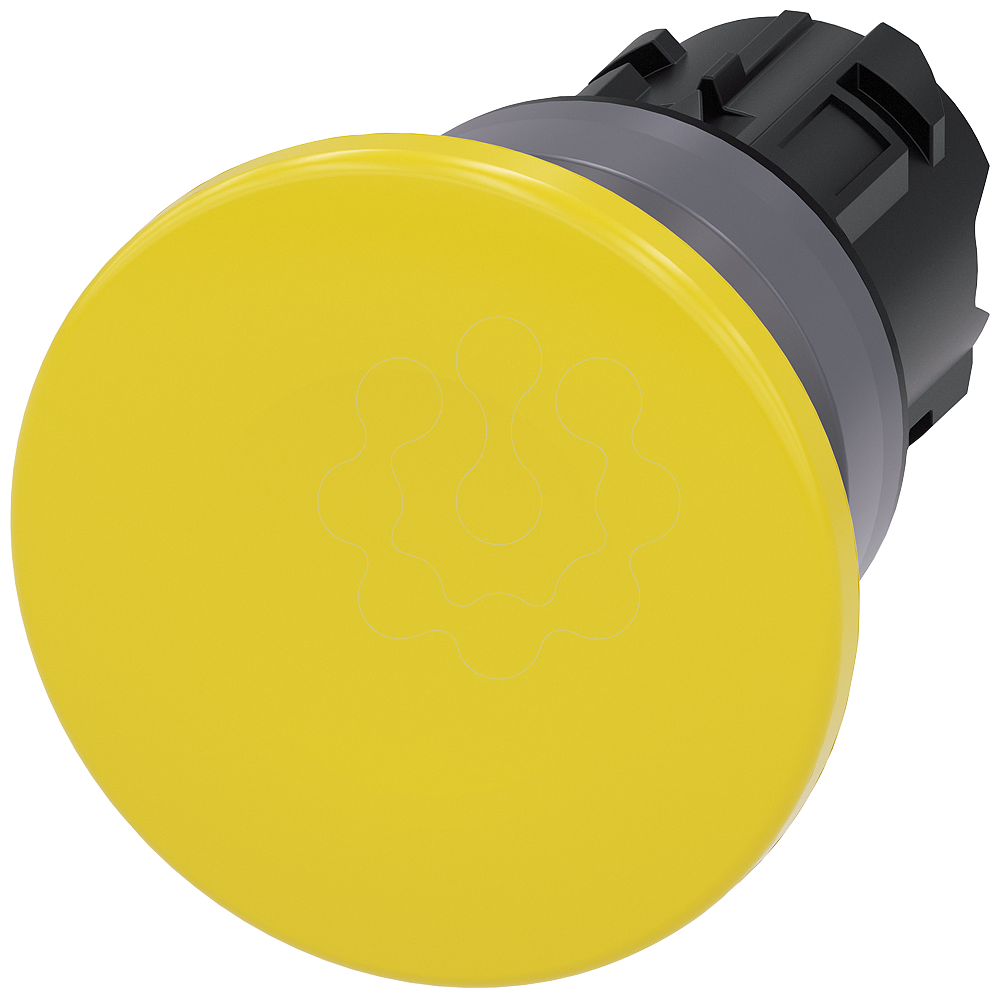 Botão cogumelo, 22mm, redondo, plástico, com anel frontal de metal, amarelo, 40mm
