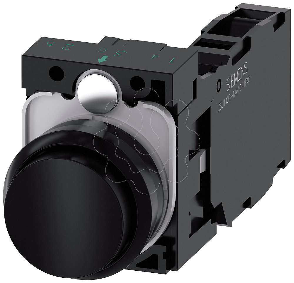 botão, 22 mm, redondo, plástico, preto, botão de pressão, alto, tecla com retorno, com suporte 1NA+1NF, conexão parafusada, com inscrição a laser, ...