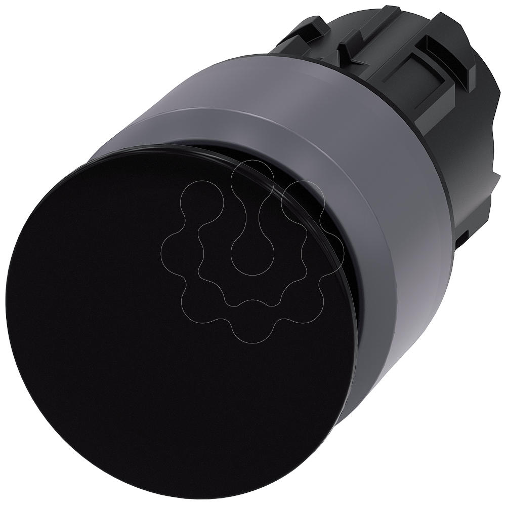 Botão cogumelo, 22mm, redondo, plástico, com anel frontal de metal, preto, 30mm