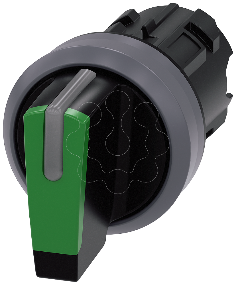Interruptor com manípulo, iluminável, 22mm, redondo, plástico com anel frontal de metal, verde