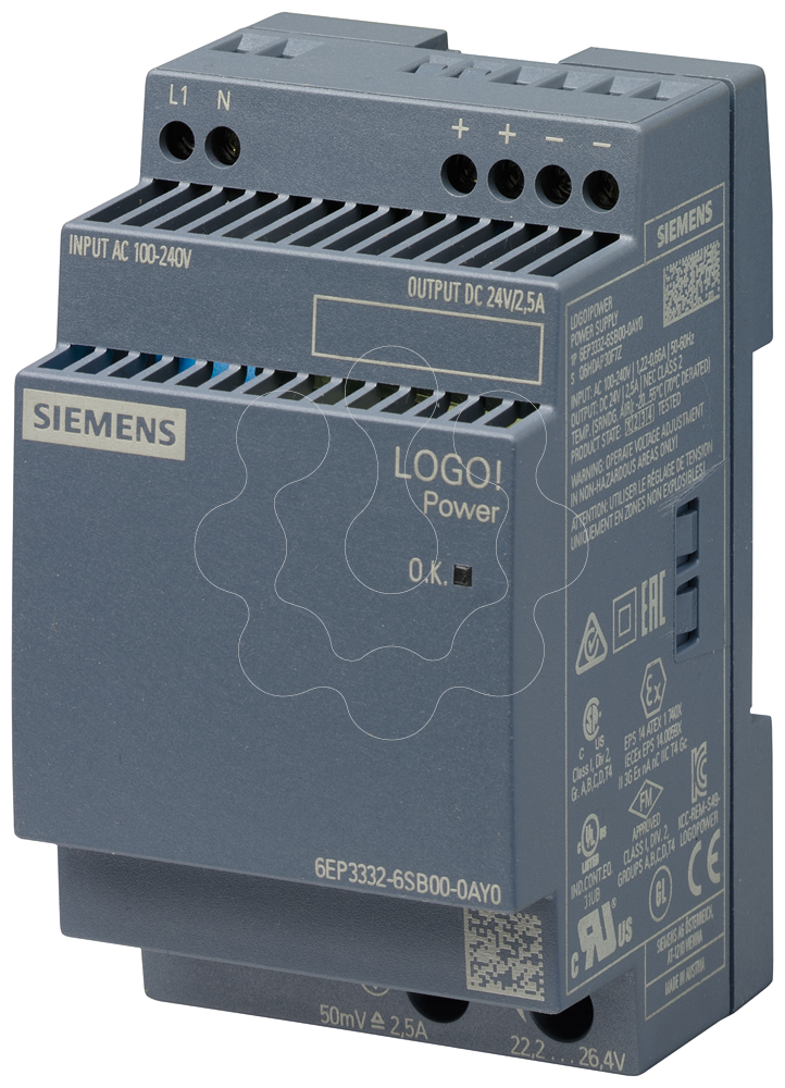 Alimentação de corrente LOGO!Power, monofásica 24 V CC/2,5 A