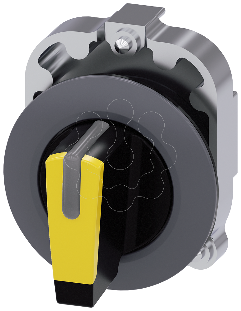 interruptor com manípulo, iluminável, 30 mm, redondo, metal, mate, amarelo, manípulo, curto, anel frontal para montagem plana, 3 posições de comuta...
