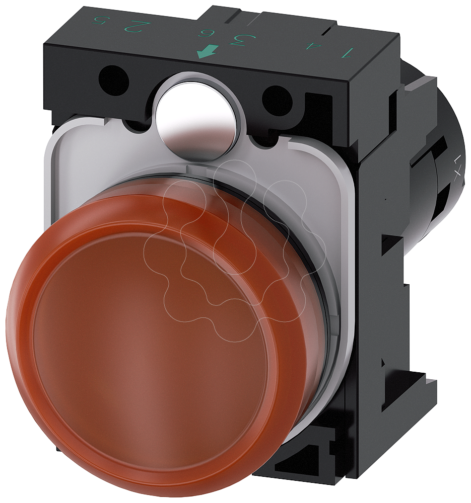 Sinalizador luminoso, 22mm, redondo, plástico, âmbar, lente, plano, 230V CA