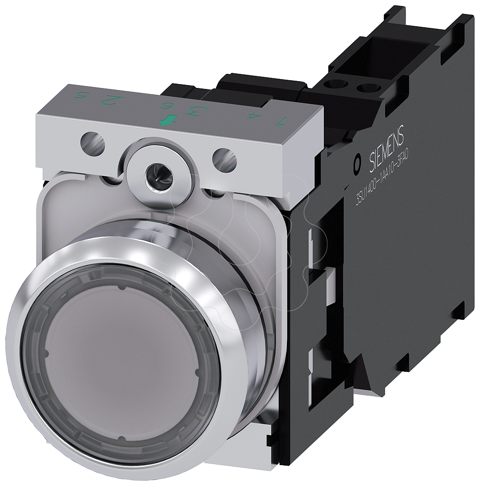 Botão de pressão, iluminado, 22mm, redondo, metal, alto brilho, branco, 1NA+1NF