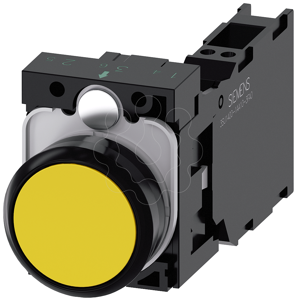 botao, 22 mm, redondo, plastico, amarelo, botao de pressao, plano, tecla com retorno, com suporte 1NA+1NF, conexao de mola, com inscricao a laser, ...