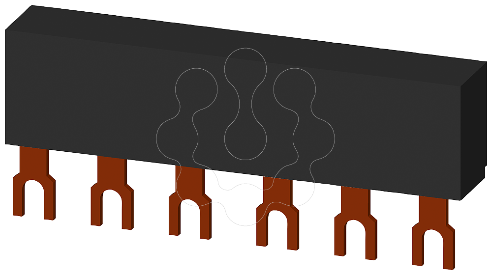 Barramento trifásico distância de separação 45mm para 2 interruptores, conexões em forma de garfo